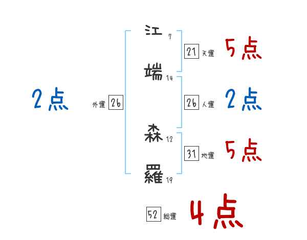 江端森羅さんの画数の鑑定結果