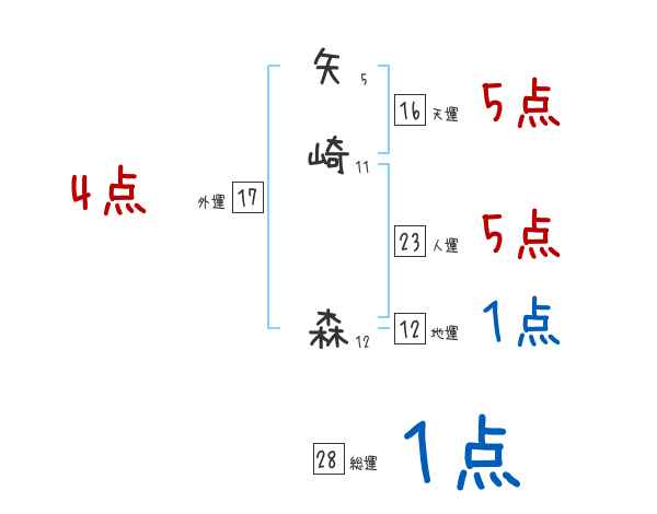 矢崎森さんの画数の鑑定結果