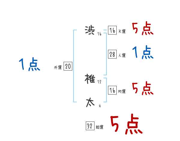 総運![]() | 渋椎太さんの総運は32画の5つ星!柔軟性があり成功する。チャンスが多く金運が良い。 あなたの人生を表す1番重要な運勢です。生涯を通じて影響する総合運となり、主に50歳以降の晩年期に影響を及ぼします。 |