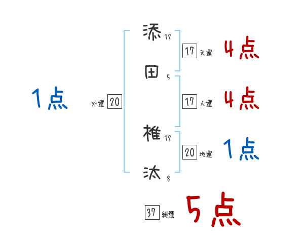 添田椎汰さんの画数の鑑定結果