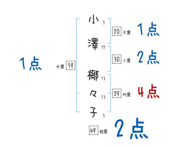 外運![]() | 小澤椰々子さんの外運は19画の1つ星!優れた才能を持ちますが、協調性が足りないことも。周りの人と協力する事を意識しましょう。 生活面を象徴する運勢です。外部から受ける影響力を表し、結婚運、家庭運や職場、環境への順応性を表します。 |