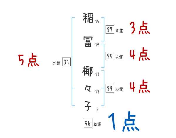 稲冨椰々子さんの画数の鑑定結果