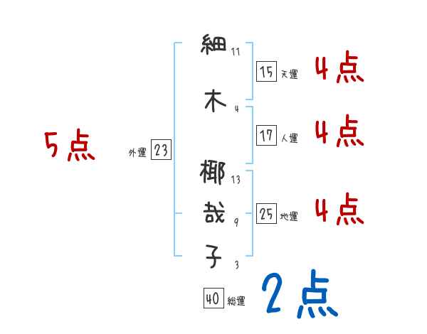 天運![]() | 細木椰哉子さんの天運は15画の4つ星!人徳があり出世する。順調に物事を進め円満な人生。 家系が持つ宿命的な運勢を表します。祖先から受け継いだ苗字ですので自分の力が及びません。家柄を象徴します。 |