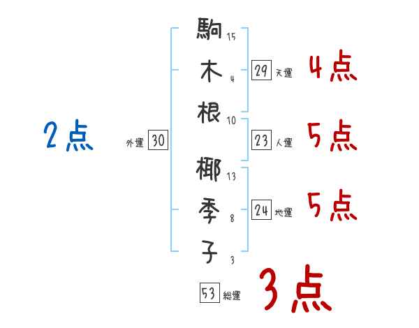 駒木根椰季子さんの外運は30画の2つ星