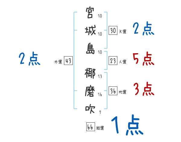 宮城島椰磨吹さんの画数の鑑定結果