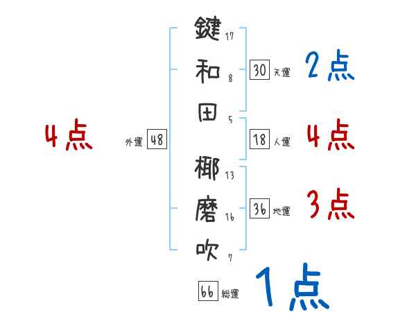 鍵和田椰磨吹さんの画数の鑑定結果