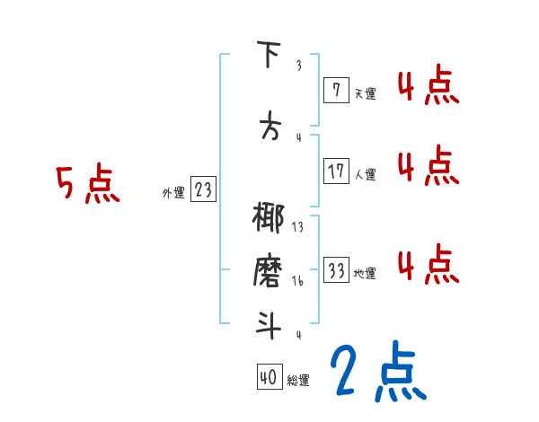 家系が持つ宿命的な運勢を表します。祖先から受け継いだ苗字ですので自分の力が及びません。家柄を象徴します。