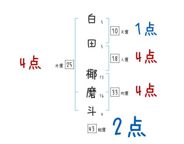 家系が持つ宿命的な運勢を表します。祖先から受け継いだ苗字ですので自分の力が及びません。家柄を象徴します。
