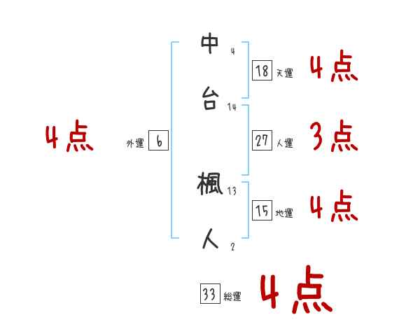 中台楓人さんの画数の鑑定結果