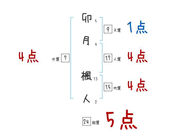 卯月楓人さんの画数の鑑定結果