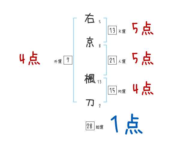 右京楓刀さんの画数の鑑定結果
