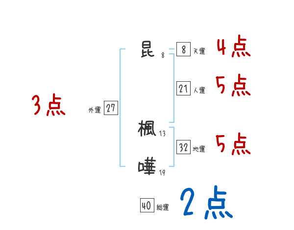 昆楓嘩さんの画数の鑑定結果