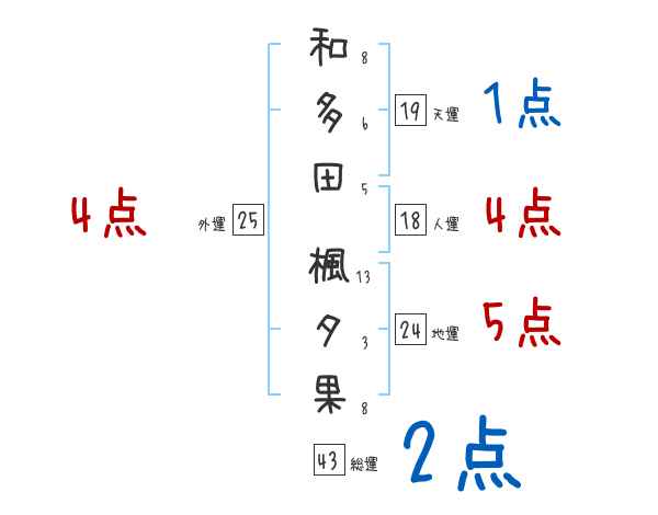 和多田楓夕果さんの画数の鑑定結果