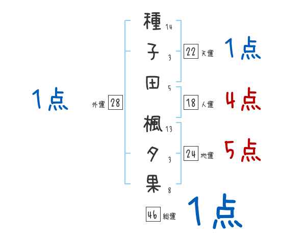 外運![]() | 種子田楓夕果さんの外運は28画の1つ星!家庭環境に注意。スポーツで活躍できる能力があるかも。 生活面を象徴する運勢です。外部から受ける影響力を表し、結婚運、家庭運や職場、環境への順応性を表します。 |
