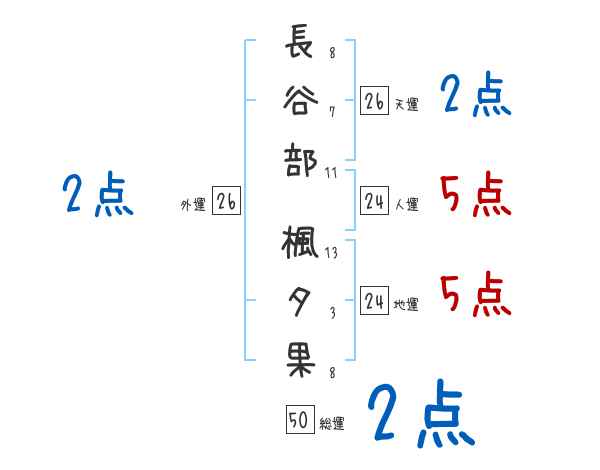 長谷部楓夕果さんの画数の鑑定結果