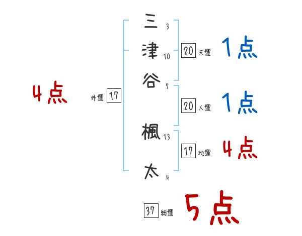 三津谷楓太さんの画数の鑑定結果