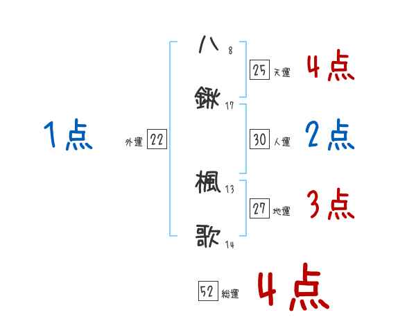 八鍬楓歌さんの画数の鑑定結果