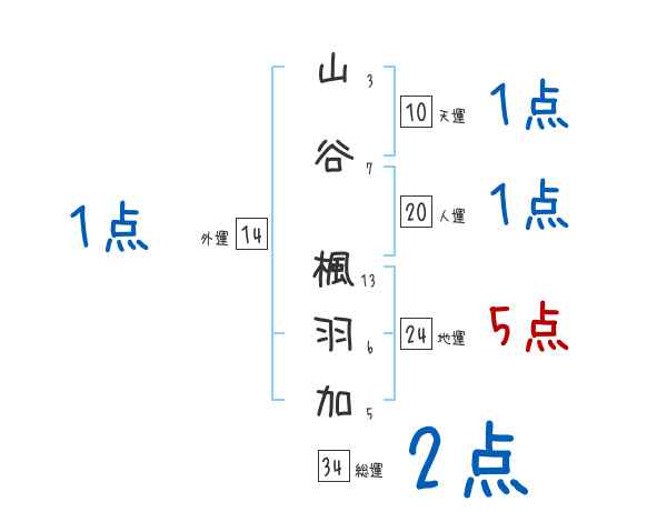 天運![]() | 山谷楓羽加さんの天運は10画の1つ星!不安を感じやすい傾向。ストレスを抱えないように注意しましょう。 家系が持つ宿命的な運勢を表します。祖先から受け継いだ苗字ですので自分の力が及びません。家柄を象徴します。 |