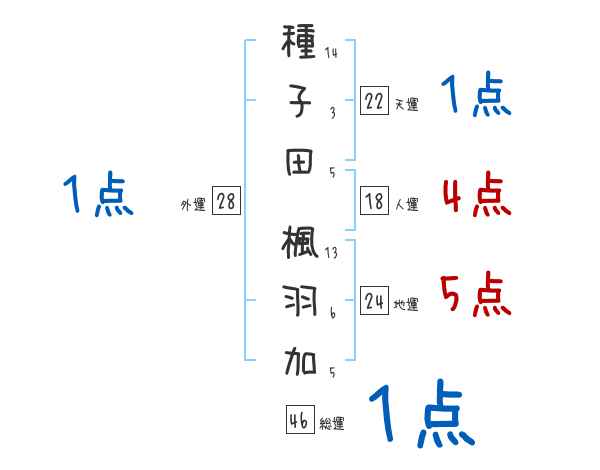 種子田楓羽加さんの画数の鑑定結果
