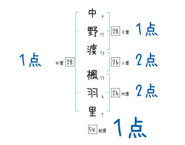 天運![]() | 中野渡楓羽里さんの天運は28画の1つ星!家庭環境に注意。スポーツで活躍できる能力があるかも。 家系が持つ宿命的な運勢を表します。祖先から受け継いだ苗字ですので自分の力が及びません。家柄を象徴します。 |