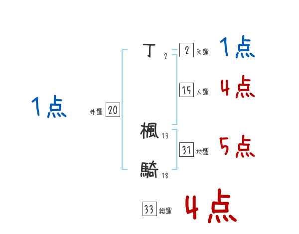 丁楓騎さんの画数の鑑定結果