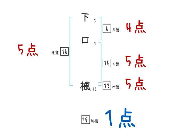下口楓さんの画数の鑑定結果