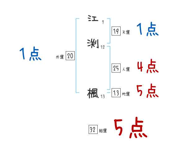 総運![]() | 江渕楓さんの総運は32画の5つ星!柔軟性があり成功する。チャンスが多く金運が良い。 あなたの人生を表す1番重要な運勢です。生涯を通じて影響する総合運となり、主に50歳以降の晩年期に影響を及ぼします。 |
