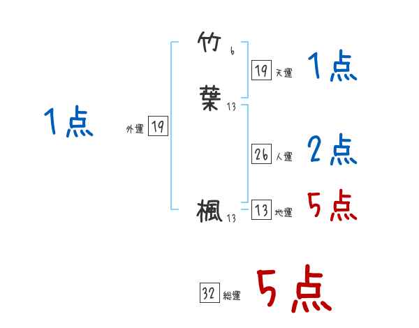 竹葉楓さんの画数の鑑定結果