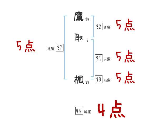 鷹取楓さんの画数の鑑定結果