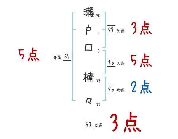 瀬戸口楠々さんの画数の鑑定結果