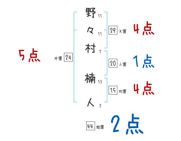 野々村楠人さんの画数の鑑定結果