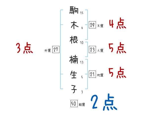 駒木根楠生子さんの画数の鑑定結果