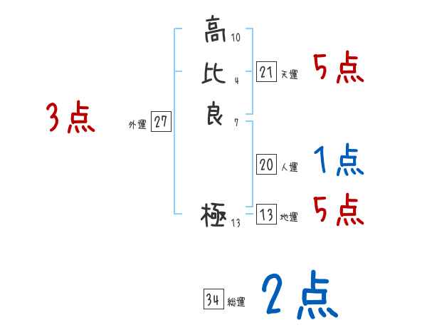 高比良極さんの画数の鑑定結果