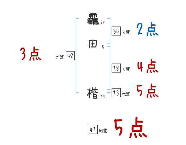 靏田楷さんの画数の鑑定結果