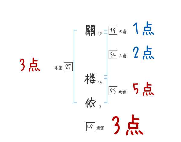 關楼依さんの画数の鑑定結果