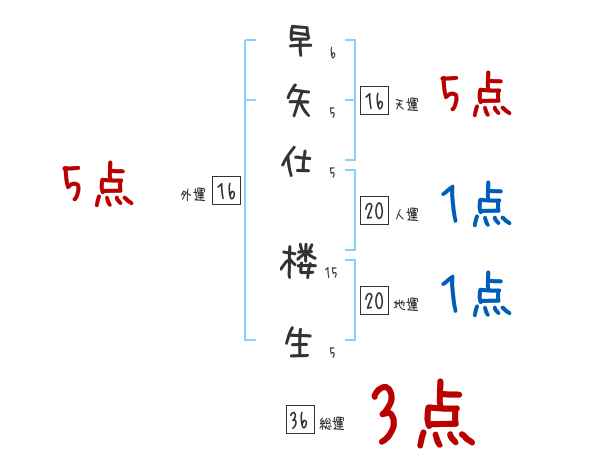 早矢仕楼生さんの画数の鑑定結果