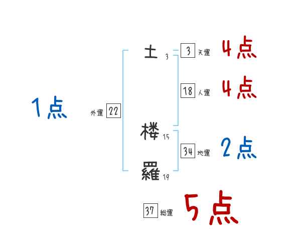 天運![]() | 土楼羅さんの天運は3画の4つ星!活動的で才能に恵まれ、多くの信頼を得る。希望に満ち成長する。 家系が持つ宿命的な運勢を表します。祖先から受け継いだ苗字ですので自分の力が及びません。家柄を象徴します。 |