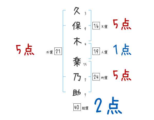 外運![]() | 久保木楽乃助さんの外運は21画の5つ星!統率力がある。独立し成功する。名誉を手に入れる。 生活面を象徴する運勢です。外部から受ける影響力を表し、結婚運、家庭運や職場、環境への順応性を表します。 |