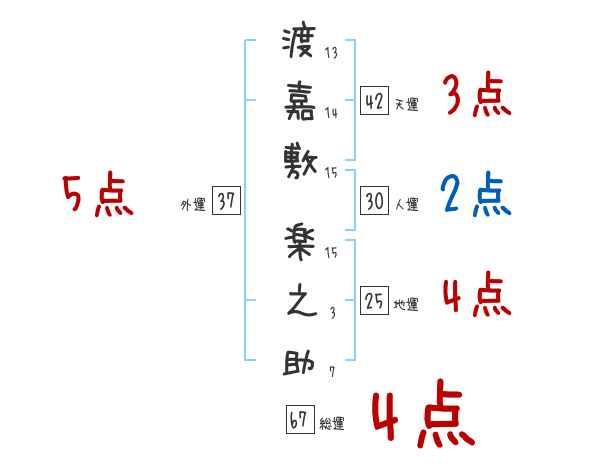 渡嘉敷楽之助さんの外運は37画の5つ星