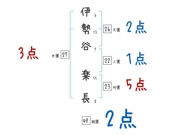 伊勢谷楽長さんの画数の鑑定結果