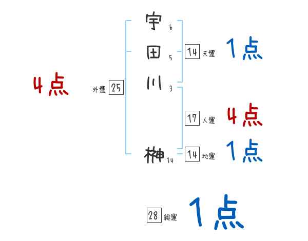 宇田川榊さんの画数の鑑定結果