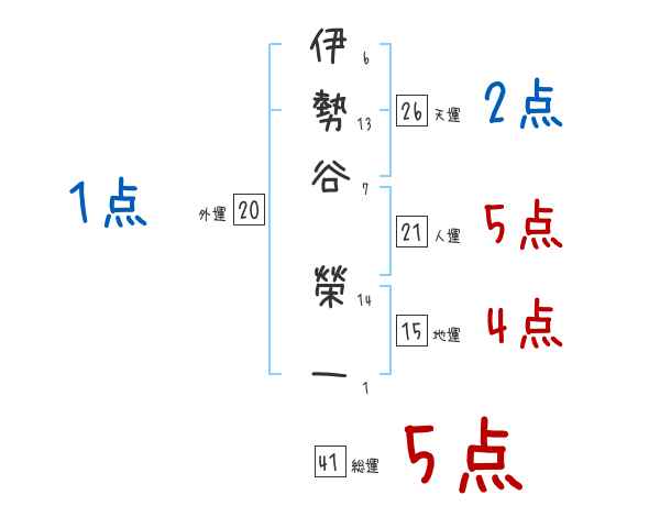 天運![]() | 伊勢谷榮一さんの天運は26画の2つ星!波瀾万丈かも。信頼できる人を大事にしましょう。 家系が持つ宿命的な運勢を表します。祖先から受け継いだ苗字ですので自分の力が及びません。家柄を象徴します。 |