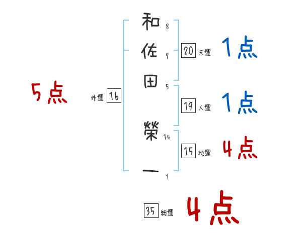 外運![]() | 和佐田榮一さんの外運は16画の5つ星!人望が厚く大きく発展する。逆転成功が見える。 生活面を象徴する運勢です。外部から受ける影響力を表し、結婚運、家庭運や職場、環境への順応性を表します。 |