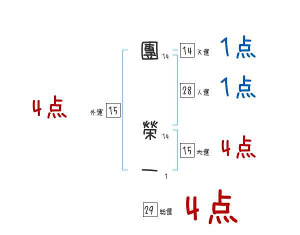 外運![]() | 團榮一さんの外運は15画の4つ星!人徳があり出世する。順調に物事を進め円満な人生。 生活面を象徴する運勢です。外部から受ける影響力を表し、結婚運、家庭運や職場、環境への順応性を表します。 |