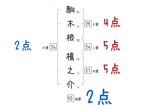 駒木根槙之介さんの画数の鑑定結果