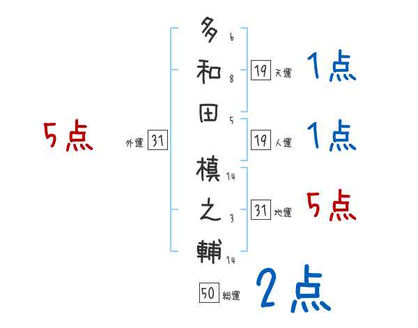 総運![]() | 多和田槙之輔さんの総運は50画の2つ星!浮き沈みが激しく不安定。しりすぼみに衰退しやすいので注意しましょう。 あなたの人生を表す1番重要な運勢です。生涯を通じて影響する総合運となり、主に50歳以降の晩年期に影響を及ぼします。 |