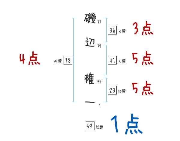 磯辺権一さんの画数の鑑定結果