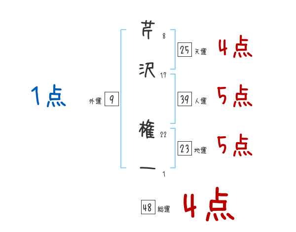 芹沢権一さんの画数の鑑定結果