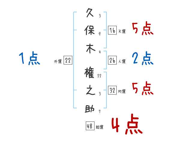 天運![]() | 久保木権之助さんの天運は16画の5つ星!人望が厚く大きく発展する。逆転成功が見える。 家系が持つ宿命的な運勢を表します。祖先から受け継いだ苗字ですので自分の力が及びません。家柄を象徴します。 |