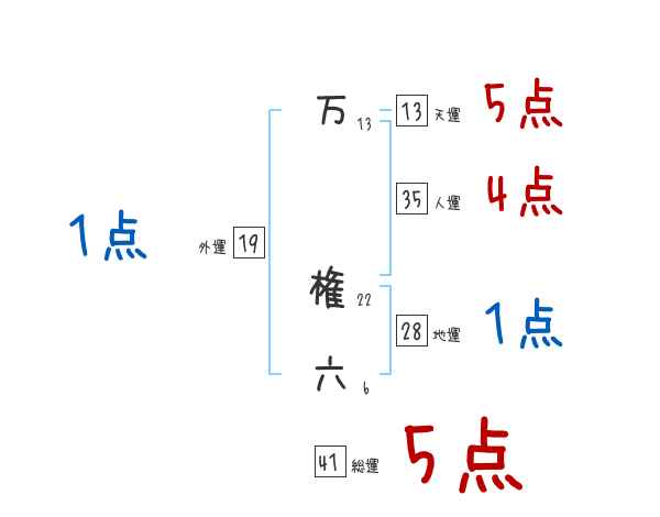 万権六さんの画数の鑑定結果